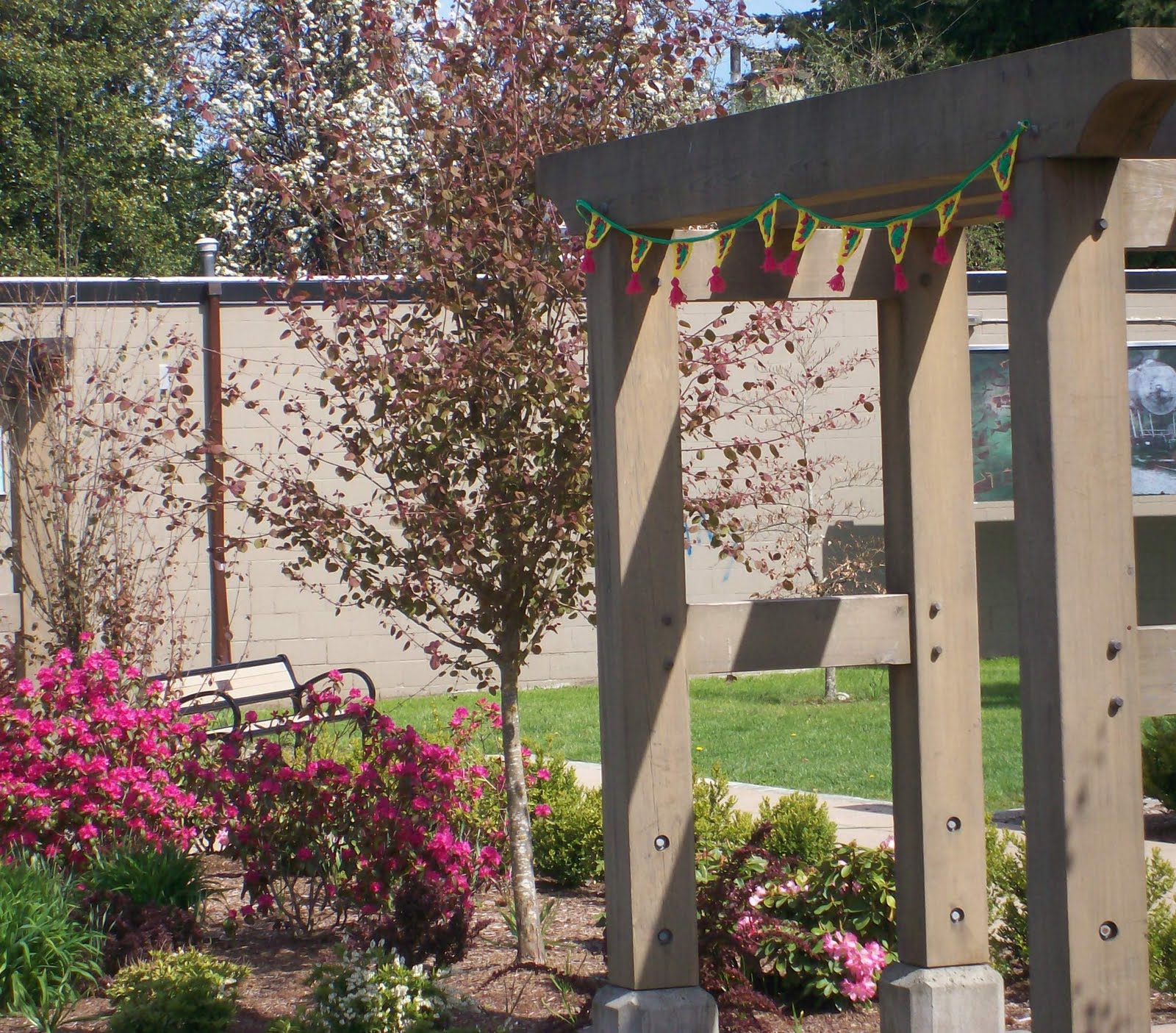 It really (really) helps to know someone tall. I scouted out this place for the bunting I've been working on for weeks, but neglected to check whether or not I could actually reach the perfect spot. It also really helps to be carrying two thick books for the tall person to balance on precariously.